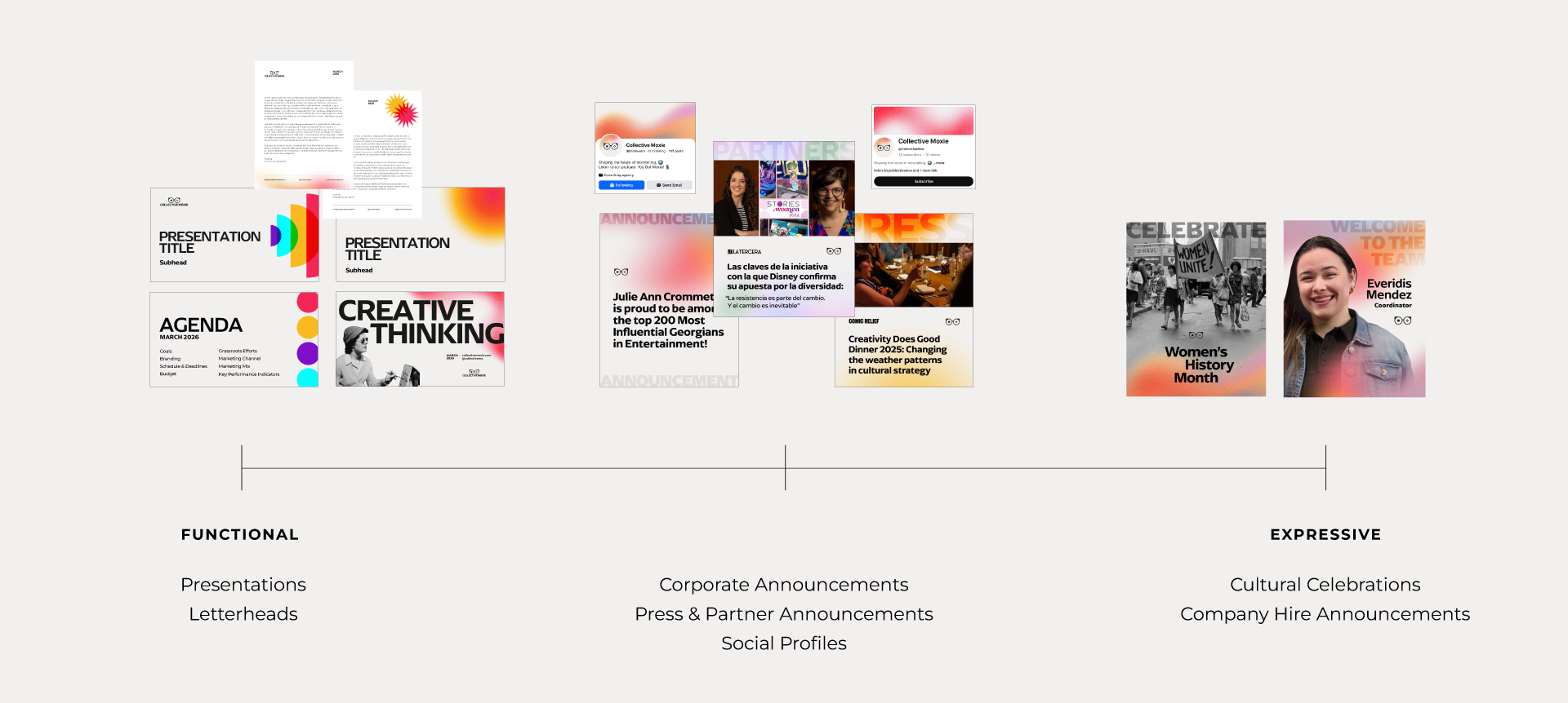 The goal: To strengthen Collective Moxie’s brand presence and storytelling through a system that brings greater clarity, consistency, and visual impact to key communications.