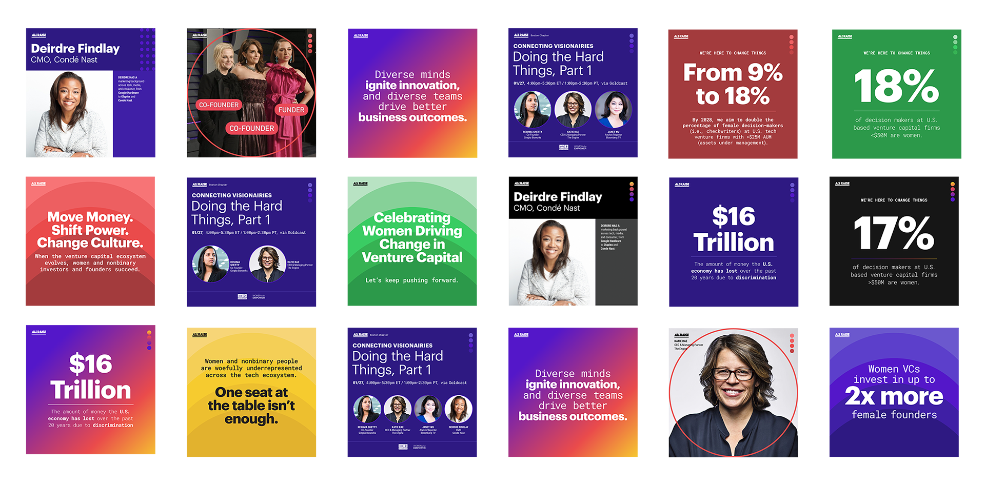 The goal: To support All Raise’s mission and enhance their brand presence, the brand template system was refreshed to ensure visual consistency, clarity, and impact across their primary communication channels (Instagram, LinkedIn, X, email).
